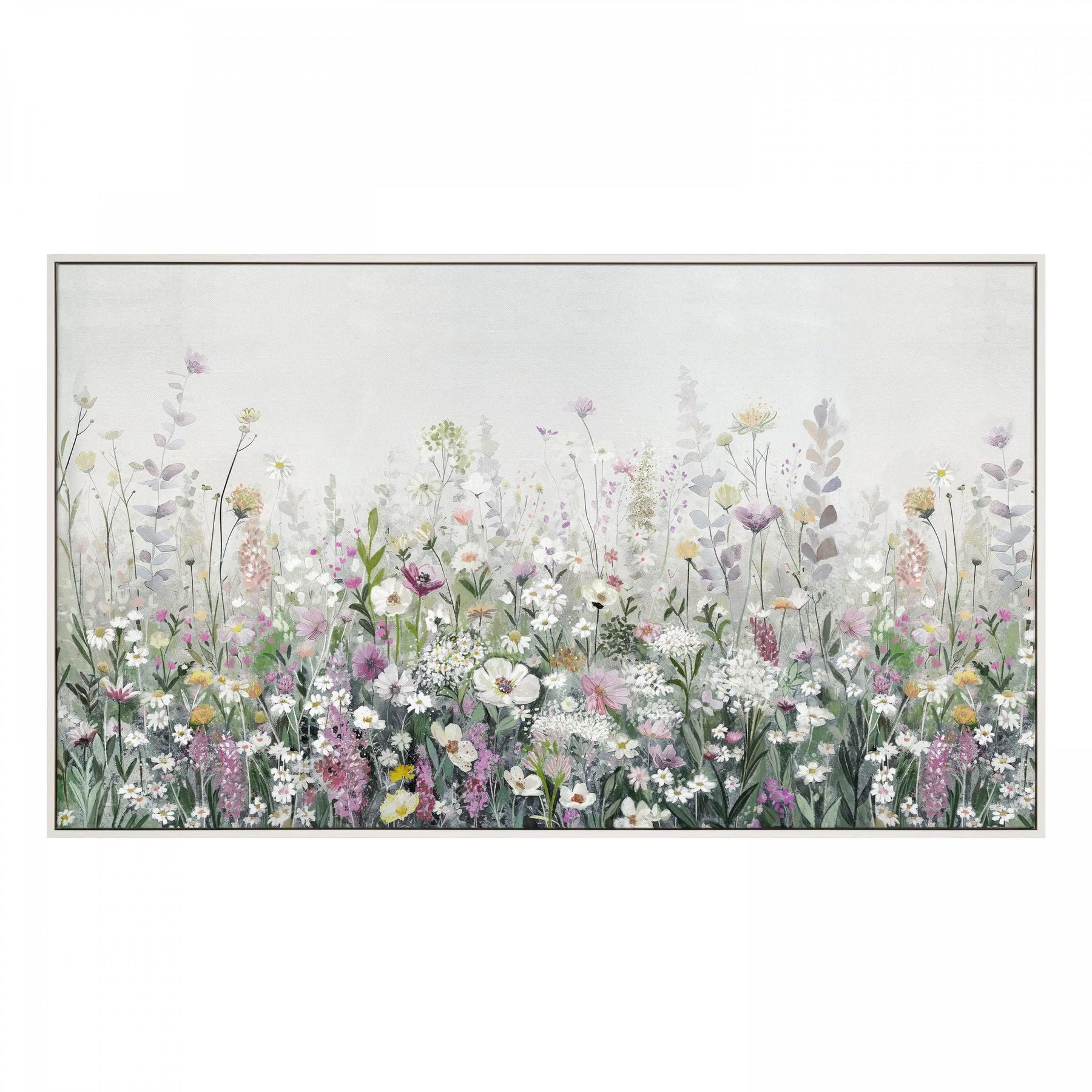 Immerse yourself in this captivating watercolour painting of enchanting wildflowers, where delicate pastel soft pink, mellow yellow and white hues dance against a tranquil white background. Created by the talented Charlotte Oakley, this landscape composition brings to life an expansive field of flowers in full bloom, highlighting the intricate detail in a quintessential British meadow. This exquisite artwork is presented on canvas and elegantly framed with a white wood effect.