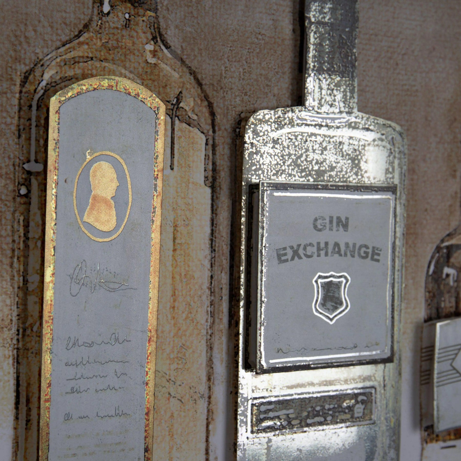 Charlotte Oakley's The Connoisseur is a heady yet gently humorous mix. Exotic varieties of our favourite juniper-flavoured spirit come in individually shaped bottles. Labelled with intoxicating brands distilled from Charlotte's imagination - each die-cut and mounted on well- worn, aged shelves to grace your own personal gin joint. As always, Charlotte Oakley comes up with a refreshing tonic!