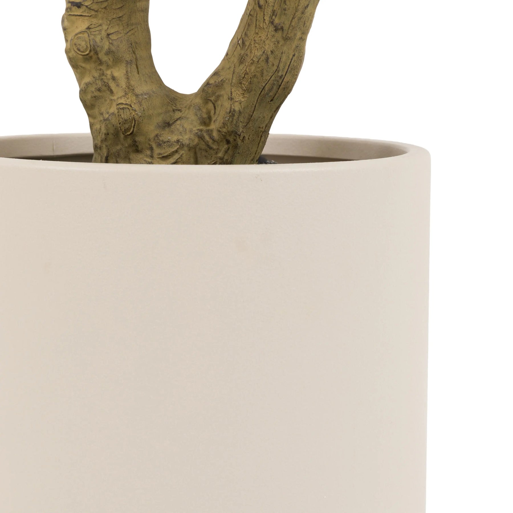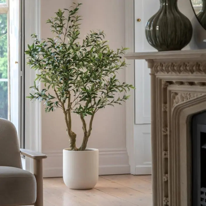 Bring a sense of Mediterranean ease into your home with this beautifully oversized olive tree. Set in a ceramic-style off-white pot, its finely detailed branches and soft green leaves evoke sun-warmed olive groves, instantly adding warmth and character to living spaces, hallways, or a light-filled conservatory.