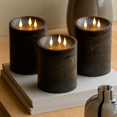 x3 3 Wick LED Candle Mocha