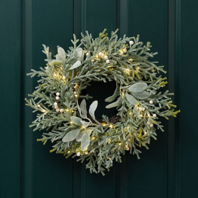 Pre-lit Frosted Wreath Lambs Ear