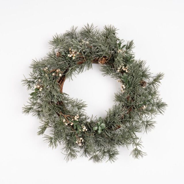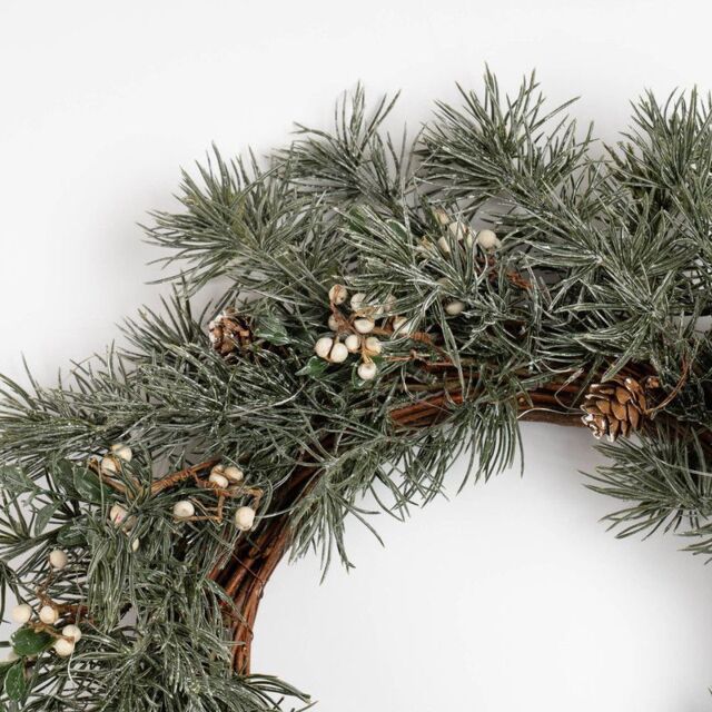 Wreaths have long embodied the interplay between nature and ritual, symbols of continuity that bridge the cycles of the seasons. This 40cm natural-feel wreath with lights draws on that tradition, its frosted greenery and lifelike foliage recalling the textures of the winter landscape. The integrated lights transform it into more than decoration: they create a gentle radiance that invites kinship, gathering, and reflection, whether at the threshold, above the hearth, or at the centre of the table.