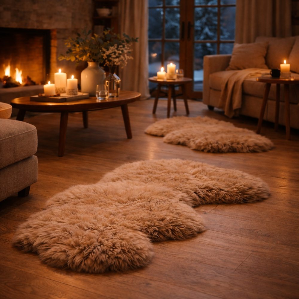 Crafted for comfort and everyday indulgence, this double sheepskin rug brings depth, softness, and quiet luxury to any room.