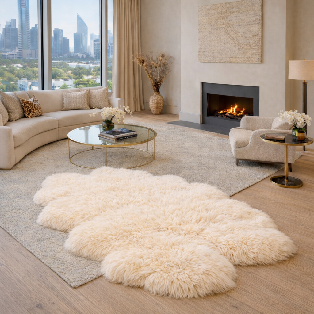 Experience the sumptuous comfort of this exquisite sheepskin rug. Invite it to your bedroom for an infusion of luxury, place it near your fireplace for a touch of coziness, or drape it over a sofa or bench for a burst of warmth and softness.