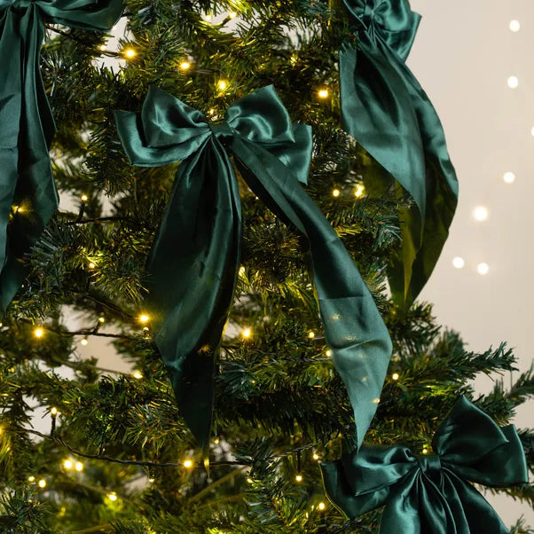 Elevate your holiday décor with this set of six satin bow clip decorations. Each 19cm bow is crafted from smooth, lustrous ribbon and available in a palette of festive favourites — gold, red, silver, ruby red, or green — allowing you to perfectly match your seasonal aesthetic. With easy-to-style clips, they’re a charming addition to Christmas trees, wreaths, garlands, and even beautifully wrapped gifts.