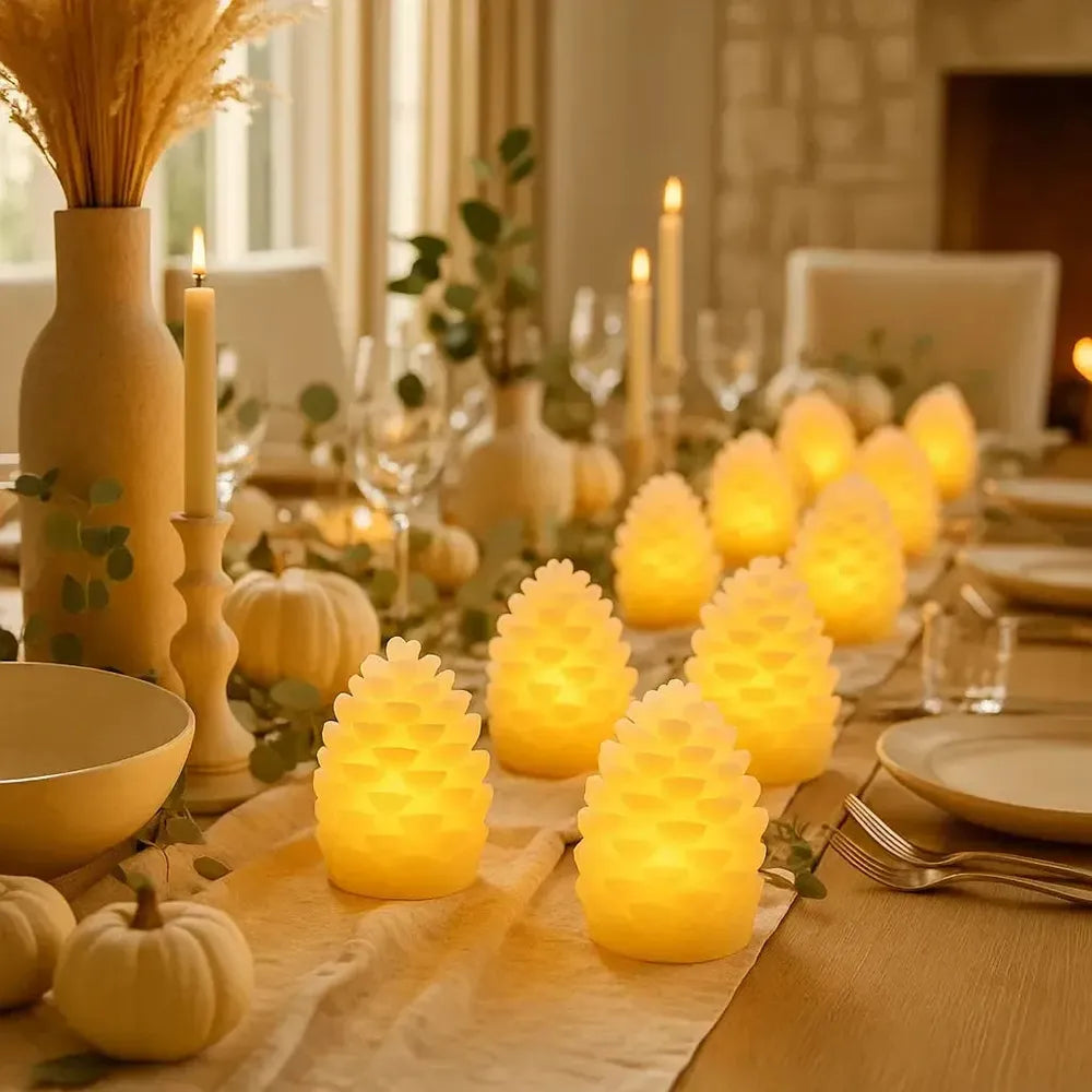x6 Mini Starburst x6 LED Glass Candles x12 Wax Pinecones x24 Tealights