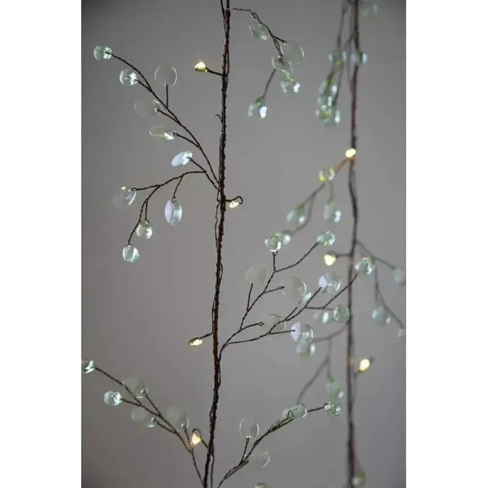Delicately draped with faceted, crystal-look beads, these enchanting branch lights bring a soft, luminous glow to any space. Each branch is adorned with clear, gem-like droplets, thoughtfully placed to catch and reflect light from every angle. Warm micro-LEDs are woven along slender, hand-wrapped brown stems, creating a layered glow that feels inviting, subtle, and beautifully balanced.
