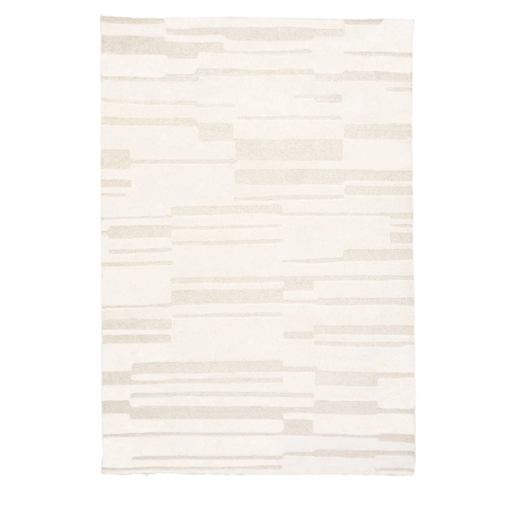 This rug’s neutral palette and abstract pattern reflect a contemporary approach to interior design that values adaptability and visual restraint. Its design allows it to move easily between styles, functioning as a unifying element within varied domestic environments.