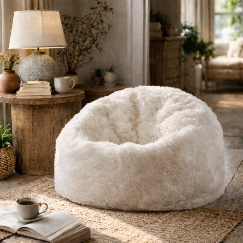 Slow mornings. Quiet evenings. This is the piece that invites you to linger a little longer. Our Sheepskin Bean Bag is designed for effortless comfort—something you sink into, reshape, and never rush away from.