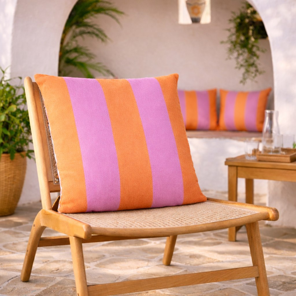 Our cushion use classic stripes bringing a relaxed, resort-style charm to outdoor seating. Designed for garden chairs, sun-drenched terraces, and slow summer afternoons, the water-resistant fabric helps it stay looking fresh through the changing seasons.