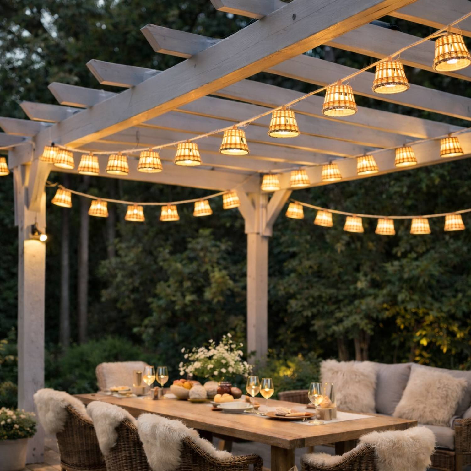 Designed to glow beautifully from dusk into evening, the AURORA Decorative Garland brings a warm, atmospheric charm to outdoor gatherings and everyday spaces alike. Hand-finished with natural fibre lampshades, each light casts a soft, vintage-inspired glow that feels inviting rather than overpowering.