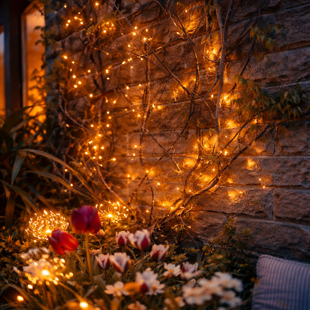 As twilight settles and the garden softens into shadow, these botanical branch lights begin to glow, casting a warm white shimmer through leaves and along patio railings. Flexible and sculptural, each branch can be gently shaped to suit your space, whether wrapped around a trellis or woven through a favorite planter.