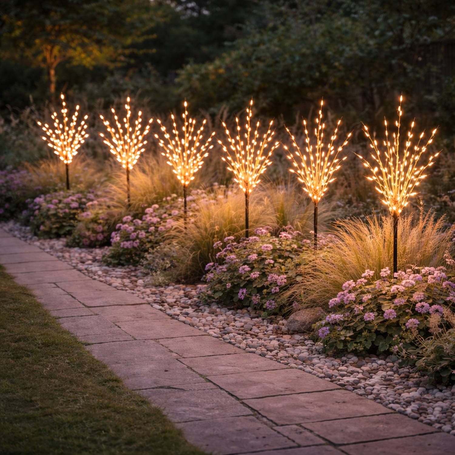 Due to the unique design, the exact shape and size of the stems may vary. However, this only adds to the natural charm of these lights. Not all buds include lights, but we suggest purchasing multiple units to create a truly magical lighting display. Perfect for use in pots or borders, these solar fennel lights are sure to elevate the ambiance of any space. Upgrade your home or garden with our premium solar fennel lights today!