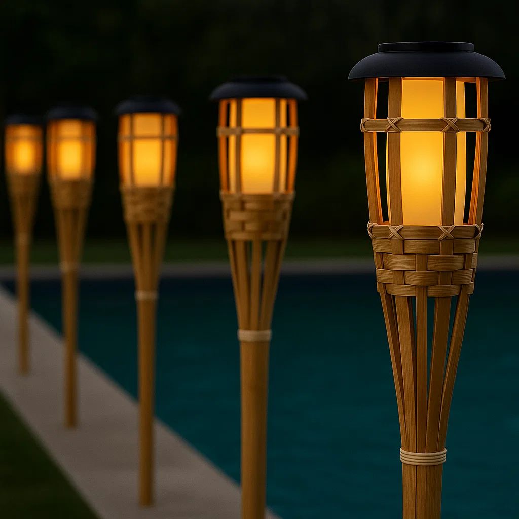 Infuse your outdoor spaces with the effortless charm of our Solar Bamboo Tiki Garden Torches — where natural materials meet soft, solar-powered illumination. Inspired by the relaxed elegance of coastal evenings and artisan craftsmanship, these woven bamboo torches bring a grounded, organic feel to pathways, patios, and garden gatherings. As daylight fades, each torch casts a warm, flickering glow, transforming your space with an inviting ambience that feels both timeless and contemporary.