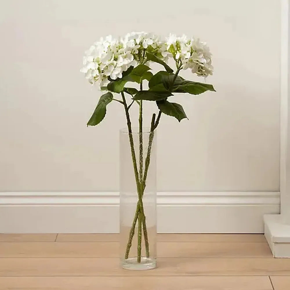 DELIVERY MID TO END JANUARY These 25" artificial hydrangea stems offer a lasting interpretation of a flower long associated with abundance, grace, and domestic refinement. Their carefully rendered form allows the visual language of hydrangeas to be carried into interior spaces without the impermanence of natural blooms, reflecting contemporary preferences for enduring beauty.