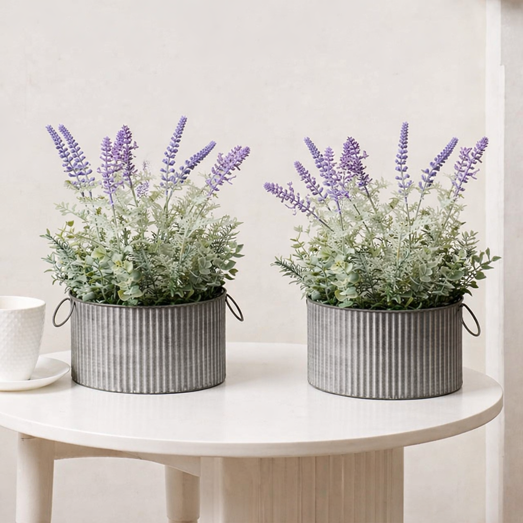 This artificial lavender arrangement, set within a rustic metal bucket, reflects a nostalgic interpretation of nature shaped for domestic display. The clustered lavender blooms draw on familiar rural imagery associated with calm, abundance, and everyday beauty, while the metal container introduces a utilitarian, vintage character that situates the piece within traditions of practical craftsmanship.