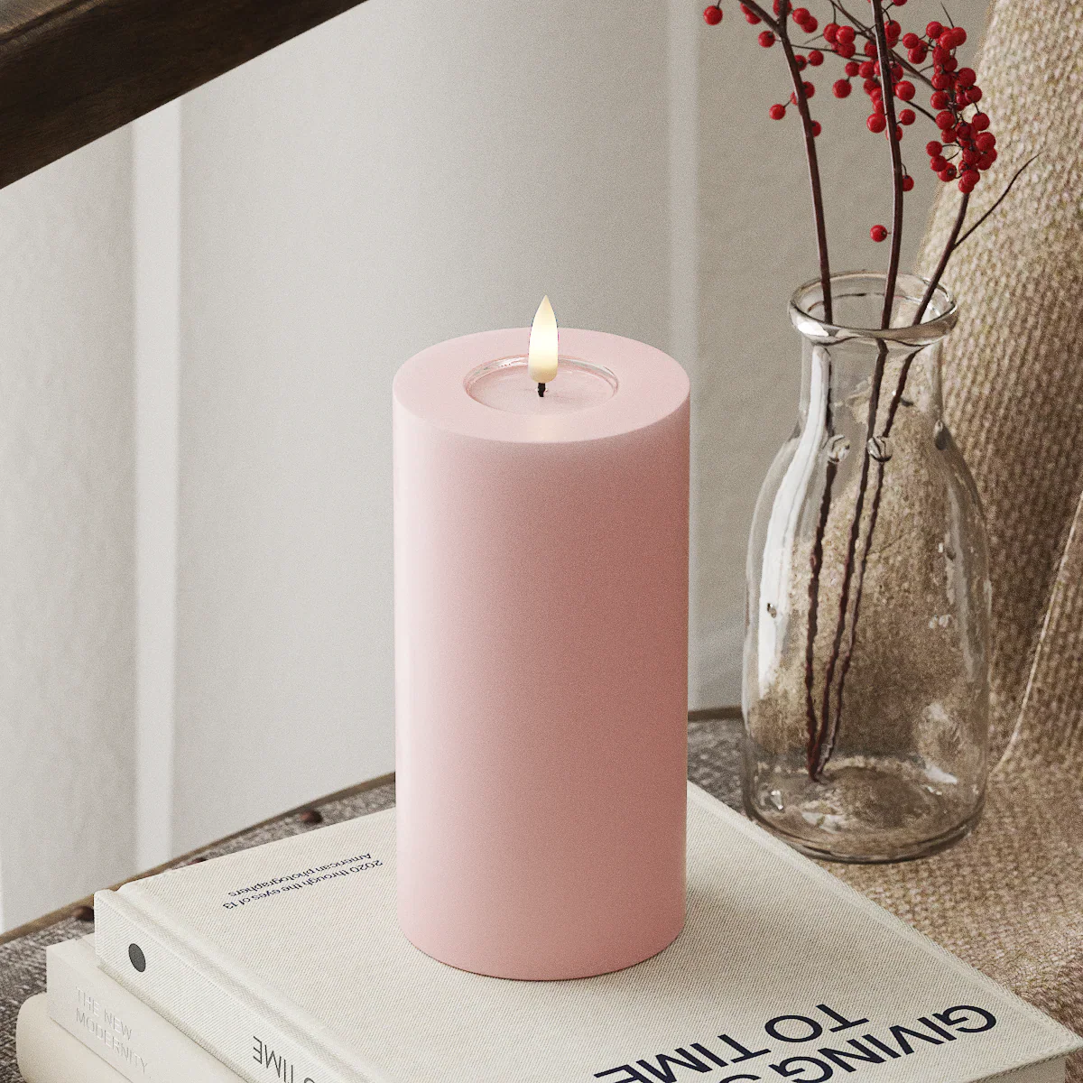 x9 LED Lux Pillar Candles Light Pink
