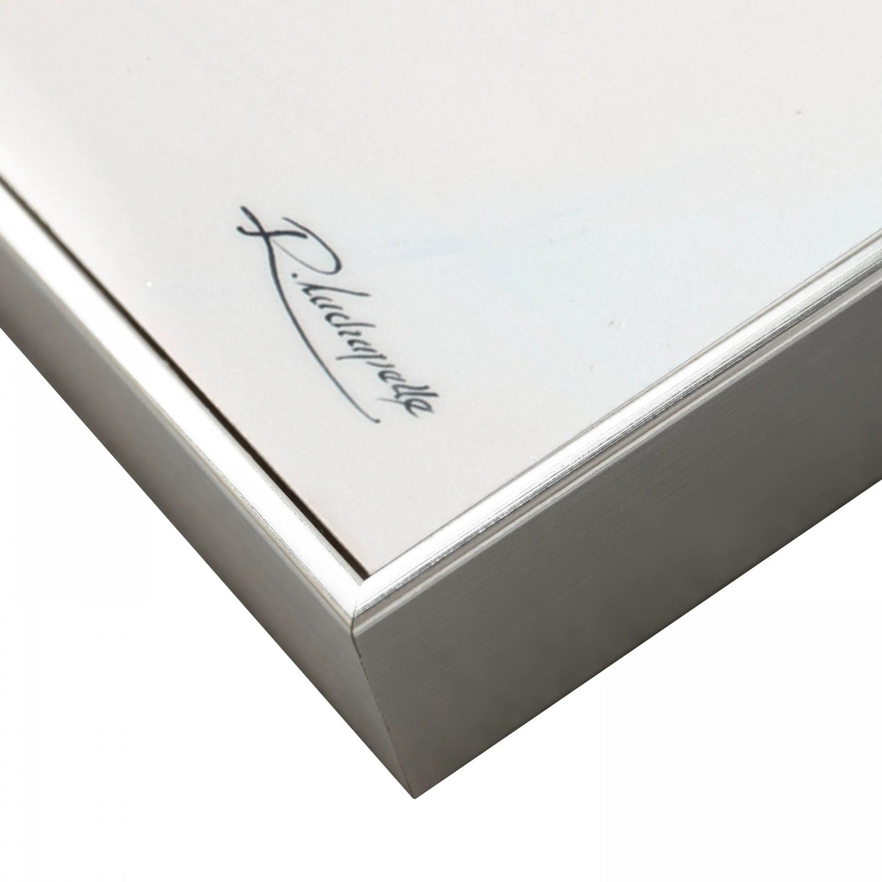 A seasonal feast for the eyes. A bustling slope jammed with enthusiastic skiers. The powdery mountainside intensely glows in the afternoon sun. The fast motion of the agile snow carvers fills this novel artwork with energy. Robert Lachapelle brilliantly captures a fun assortment of colourful ski attire. A slimline silver frame wraps itself around the high gloss acrylic artwork