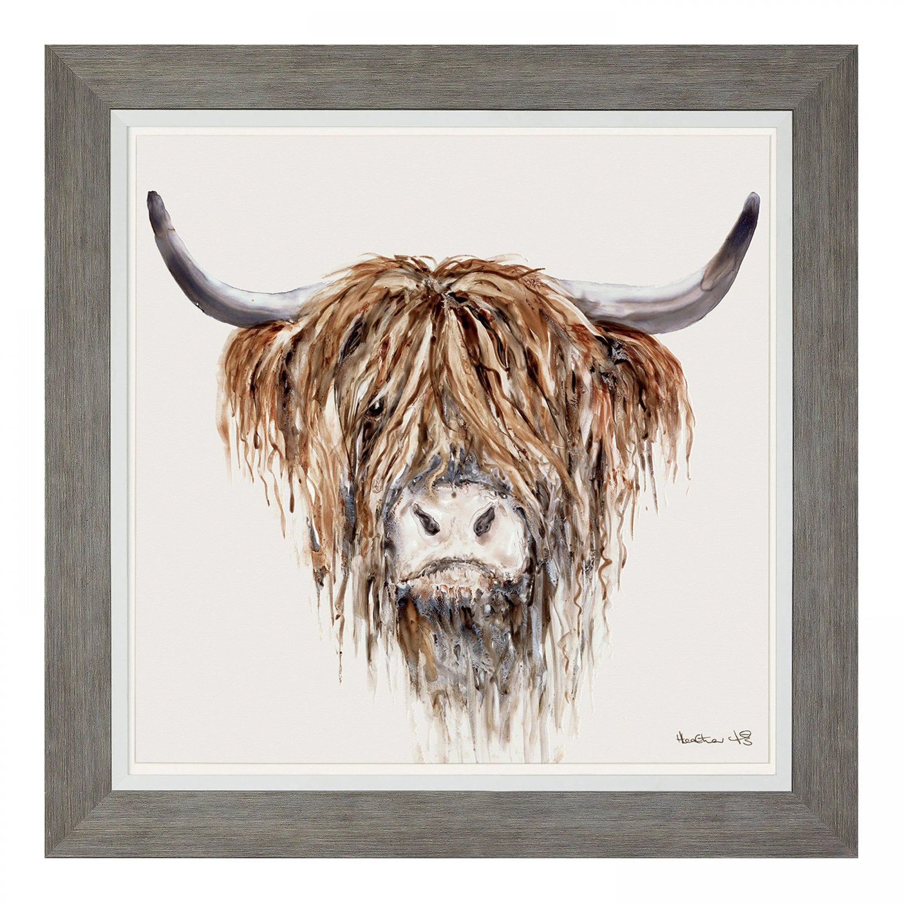 Shaggily tousled Freddie, painted by Heather Fitz and framed and coated with a warm, shiny glaze that highlights the autumnal tones of his fringe.